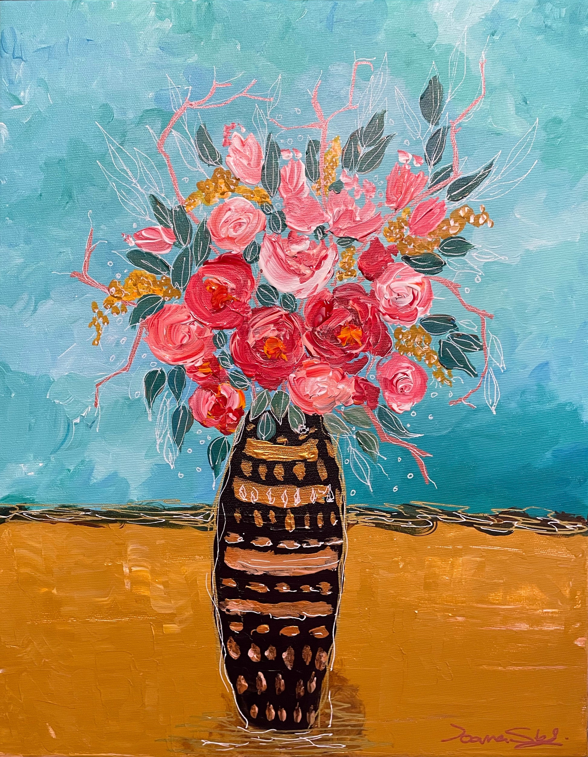 Iubesc florile, iubesc să le am în casa, în vaze chiar și pentru câteva zile; însă cele pe panza rămân mereu acolo, culoare vie așternută pe pânză.