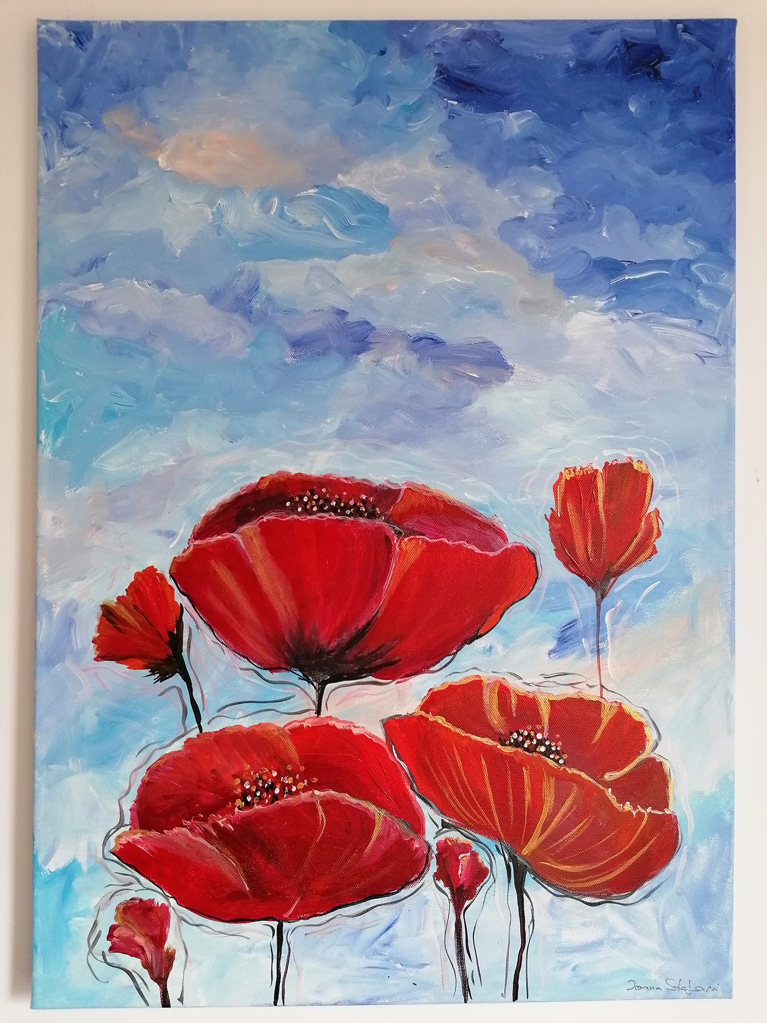 Maci sub cerul albastru - macii rămân florile mele favorite pentru a le picta, probabil și pentru că în realitate au o viață atît de scurtă, nu pot trăi în vaze.